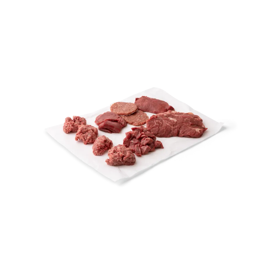Inhoud – 4x 250 gram gehakt – 2x 150 gram poulet – 2x 2 biefstuk á 120 gram – 2x 400 gram riblappen – 4x 250 gram kalfslappen – 5x 2 hamburgers á 100 gram